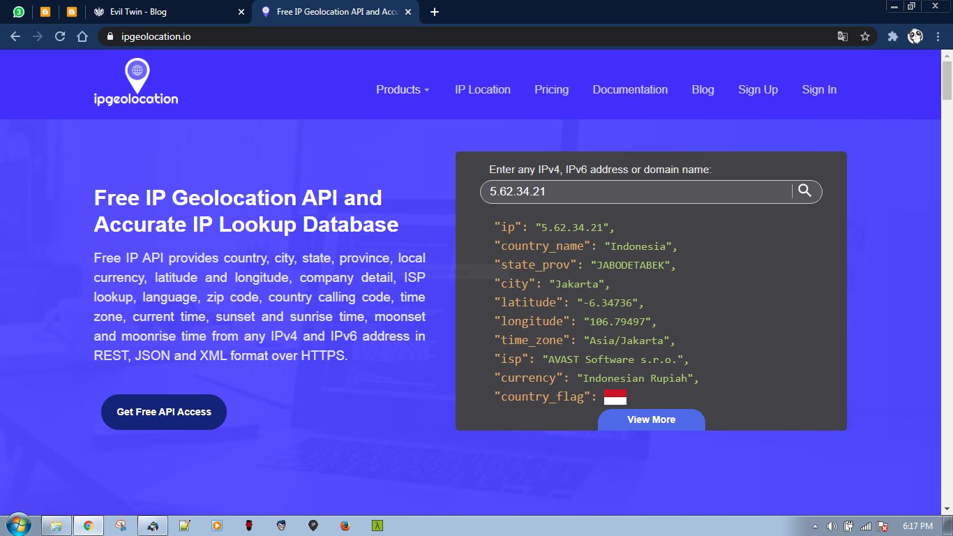 Kalo kalian udah tau alamat IP target, Maka tahap selanjutnya adalah mengunjungi Website IPGeolocation yang beralamat di https://ipgeolocation.io